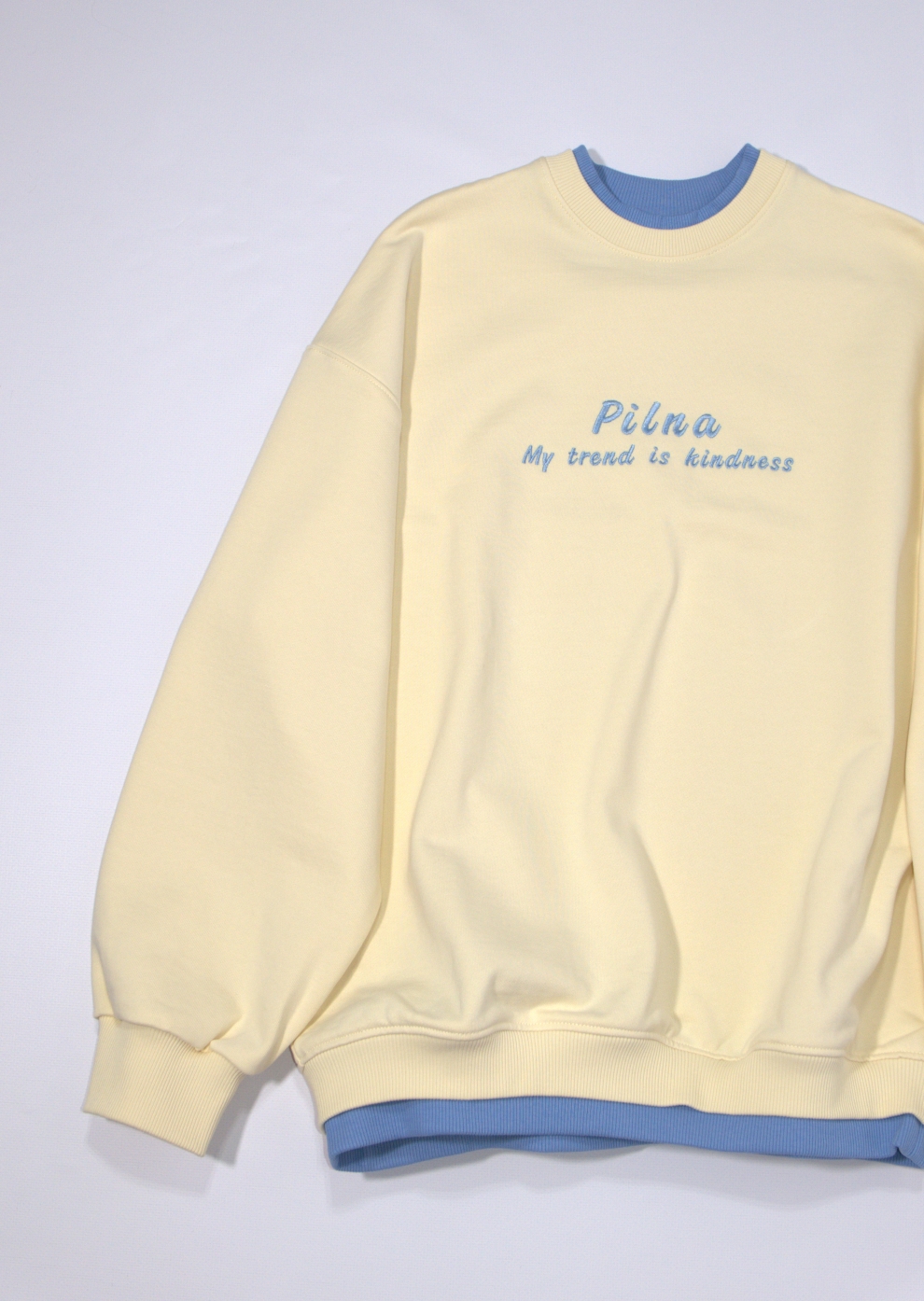 Базовый объемный свитшот из плотного 100% хлопка. Свитшот имеет двойную горловину и вышивку спереди.